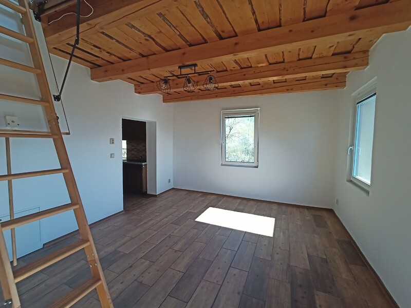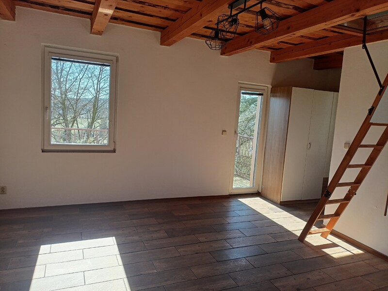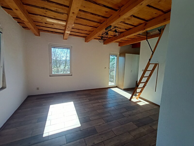 Představujeme Vám tento rodinný dům k pronájmu, nacházející se ve venkovské oblasti Krňany-Teletín, Středočeský kraj, okres Benešov. Jedná se o samostatně stojící cihlový dům, o velikosti cca 67 m2, kde v prostředním podlaží najdete kuchyň, 2 ložnice a obývací pokoj. Z obývacího pokoje vedou schody do pokdroví, které lze využít jako další pokoj. Dům je nezařízený, vyjma kuch.linky, kde je trouba, varná deska, dřez a umyvadlo. K domu patří pěkná, prostorná zahrada. Výhodou tohoto bydlení je velice klidné místo, v malé vesnici s krásnou přírodou v okolí. Dům je částečně podsklepený. Ve sklepě lze skladovt zahradní techniku a nábytek. Parkovat lze u domu, na vlastním pozemku. Výhodou tohoto domu jsou nízké provozní náklady. Je zde tepelné čerpadlo ohřívající vodu i topení, voda ze studny. Ze služeb se tedy hradí pouze elektřina a odvoz popelnic. V Teletíne jezdí autobus směr Benešov a Štěchovice.